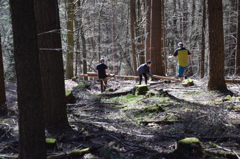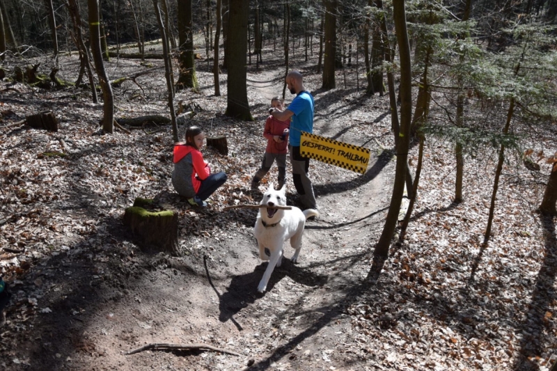 Für mich das Highlight des Tages: Die zwei Jungs aus ichweisnichtmehrwoher (sorry!), die nach Trier kamen, um unsere Trails zu fahren und vor gesperrten Strecken standen. Statt umzudrehen und nach Hause zu fahren haben die die Bikes zur Seite gelegt, die Helme ausgezogen, sich zwei Schippen geschnappt und haben mitgemacht. Meine Herren, ganz, ganz gross! MTB Community at its best!
